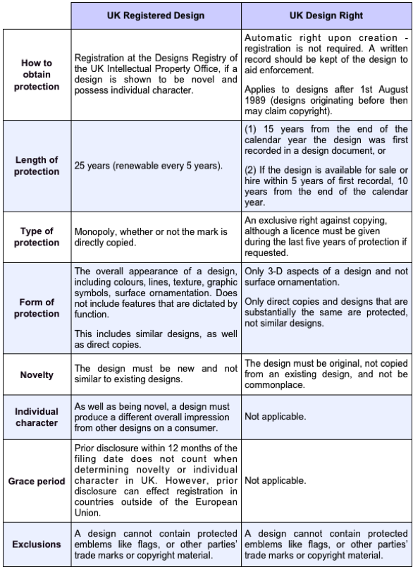 UK Registered Design and Design Right
